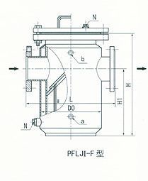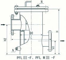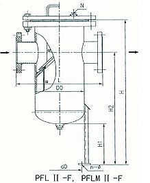 (4)籃式法蘭連接直通封頭式過(guò)濾器(PFL II—F型)  (PN≤5.OMPa DN200—500)